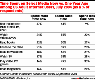 Volgens het enquetebureau eMarketeer is internet het populairste medium onder mensen tussen de 18 en 54 jaar. Goede tweede is televisie. Krant en tijdschrift scoorden verder zeer lage percentages in het onderzoek. Ga naar