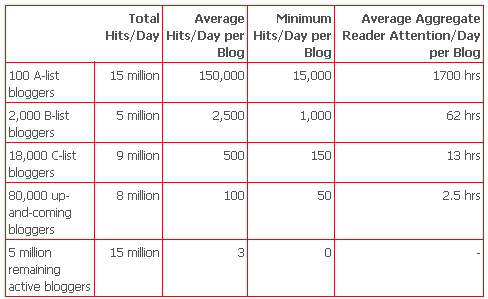 Now, with blogs, you always have to be careful. The decay rate of "I started and I stopped" or "I started and nobody visited" is fairly high, but as RSS (Really Simple Syndication) has gotten more sophisticated and value-added search capabilities have come along, this thing is really maturing.