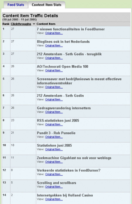 Sinds een aantal dagen maak ik gebruik van MyBlogLog.com, een handig tool om outbound klikgedrag te meten. Je hoeft je alleen aan te melden en daarna een javascriptje te plaatsen. Daarna kan je eindelijk zien op welke links er geklikt wordt en wat populair is.